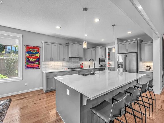 Luxury living at its finest in this custom-built, multi-generational home situated on a quiet street. Meticulously crafted with attention to detail, this amazing home features an open floor plan with soaring ceilings and expansive windows that fill the interior with tons of natural light. Enjoy exquisite finishes throughout, including a gourmet kitchen equipped with top-of-the-line appliances and a spacious island perfect for entertaining. Two primary suites, with one located on the main floor, a large office/den area perfect for work, or could be used as a 5th bedroom. Additional amenities include two separate laundry areas, a 3-car garage, RV parking, and a large backyard ready for outdoor gatherings and gardening. Nestled in the coveted Abernethy Landing neighborhood of Oregon City.