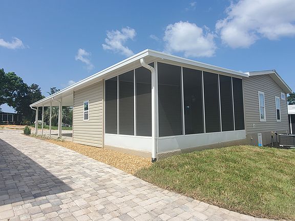 This brand new, move-in ready home is the Holiday Model which features 1456 sq. ft. of living space. The primary bedroom includes a generous walk-in-closet and adjoining bath complete with dual vanity and walk-in shower. The guest area includes a bedroom and bathroom. French-doors give access to the flex room, perfect for an office or hobby space. The laundry room serves as a secondary entryway, which provides access to the screen-enclosed lanai. Additional updates include tile backsplashes, paver carport, and attractive easy-to-maintain flooring.
