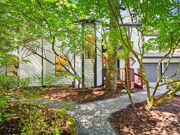 This bright & airy home offers ample space with soaring vaulted ceilings throughout. Dining room off kitchen w french doors to brand new oversized weather treated wood deck, perfect for entertaining & enjoying summer BBQ's. Master bedroom with spacious dressing area, double closets, and it's own balcony. Bonus room on lower level basement plus 4th bedroom/den. Beautiful private backyard with mature landscaping and no lawn to maintain and spacious 2 car garage.