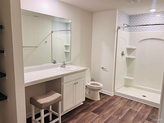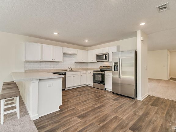 Welcome to this stunning 4-bedroom, 2-bath home with 2,062 sq. ft. of living space, built in 2022. Conveniently nestled between Nine Mile Rd and Hwy 29, this home offers quick access to everything Pensacola has to offer. As you drive up, you’ll notice the underground utilities, sidewalks, and freshly manicured lawn that complement the newly painted front door and shutters. Step inside to an inviting entryway leading to the first bedroom, perfect for a home office or guest space. The home has recently had a fresh coat of paint throughout and new ceiling fans installed in the spare bedrooms. The spacious family room is filled with natural light, recessed lighting, and a welcoming layout. To the left, two more well-sized bedrooms share a nicely appointed hall bath. Off that hallway is your walk-in laundry room nearby providing easy access to the two-car garage. At the heart of the home, the kitchen shines with brand new subway tile backsplash, a new oven and refrigerator, abundant cabinet storage, and generous countertop space. A cozy alcove makes the perfect coffee station, while the kitchen overlooks the dining area that can easily double as a second living room. Tucked at the back of the home, the master suite offers a spacious retreat with a huge walk-in closet and a master bath featuring a long vanity, stand-up shower, and linen storage. Step out through sliding glass doors onto your newly poured concrete porch, perfect for outdoor entertaining. The fenced backyard includes a gravel firepit area, making it ideal for gatherings year-round. With this home being only three years old, you can move in worry-free, knowing big-ticket items are taken care of for years to come. Schedule your showing today and make this beautiful house your home before the holidays!
