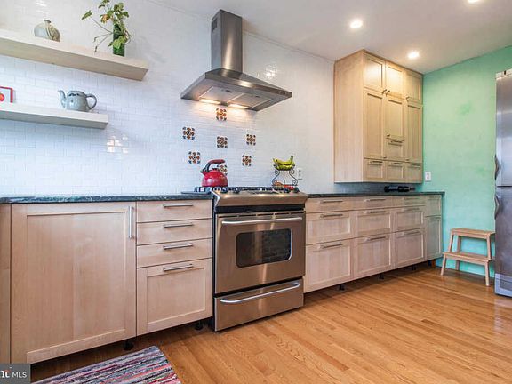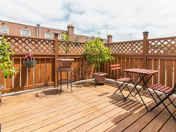 Spectacular Overbrook Find! Welcome home to this spacious rowhome, situated on a quiet, tree-lined street! This sleek, bright home with a desirable floor plan has been meticulously cared for. Enter this pristine home into the sunny, large living room, with hardwood floors throughout. This open concept is perfect for both everyday functionality and entertaining. Spacious living room, dining room and kitchen featuring stainless steel appliances, Brazilian Soapstone counters and updated cabinets. The windows are Pella Pro Series and are 4 years new. Beautiful brick accent wall adds charm to this home! Your deck is stunning and spacious, and will suit all your entertaining needs. The French door to the deck is custom made of Douglass Fir, with Shaker sticking (to match up with the kitchen cabinets). The second floor features three bedrooms and a full hallway bathroom with newer flooring and fixtures. A finished basement featuring a bonus room that could be additional living room or bedroom with access to the laundry room and backyard completes this beautiful family home! Roof is new with a 10 year warranty, and A/C Unit was replaced in 2011.