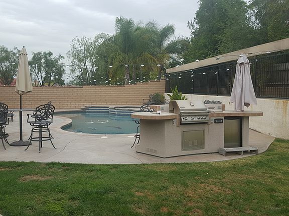 Located on a large corner lot, welcome home to this picturesque 4 bedroom, 4 bathroom pool home. Enjoy the desirable neighborhood, Wimbleton Heights, surrounded by mature trees and manicured hedges looking over the town of Redlands. The downstairs offers a spacious guest bedroom & a full sized guest bathroom, the family room with large windows overlooking lush trees, the formal dining room, a living room with a wood burning fireplace, & an open concept kitchen. The kitchen features quartz countertops, an island with a built-in gas range, a large pantry, and ample cabinets for storage space. Enjoy the built-in wine cooler as you entertain guests flowing seamlessly through the kitchen that opens to the living room and breakfast nook. The downstairs also features a spacious laundry room with a sink, and an additional ¾ bathroom offering easy access for your pool guests. Filled with natural light and up the stairs, the second story has an over-sized master bedroom and two guest bedrooms which share a full-sized guest bathroom. The spacious master bedroom is sure to delight with a skylight, space for a sitting room or office, attached balcony overlooking the resort like backyard, a master bathroom with a large soaking tub and separate shower and a large walk in closet. The large back yard feels like a resort with a covered patio, a gas burning fireplace, a gas burning sitting table, gas BBQ with built in sound system, pebble tech pool and spa, and a separated, shaded dog run.