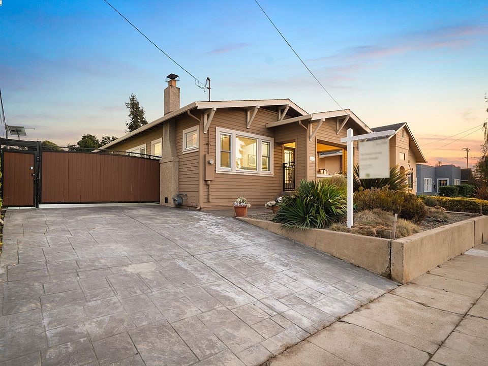 Located in the heart of historic Hayward, this beautifully updated Craftsman home blends timeless character with modern comfort. Situated on an expansive 8,000 sq. ft. lot, it features a drought-resistant front yard, inviting covered porch, and an oversized 2.5-car garage. Inside, natural light fills the spacious living room with tray ceilings, a brick fireplace, and arched doorways. Hardwood floors lead through the dining area to a bright, updated kitchen complete with new appliances, white cabinetry, and a breakfast bar. The home offers three bedrooms with walk-in closets, two updated bathrooms, and a convenient laundry room. The large backyard is perfect for entertaining, relaxing under the covered patio, or creating your dream outdoor space. Ideally located near downtown Hayward’s shops, restaurants, and BART, this home offers the perfect balance of charm, functionality, and convenience.