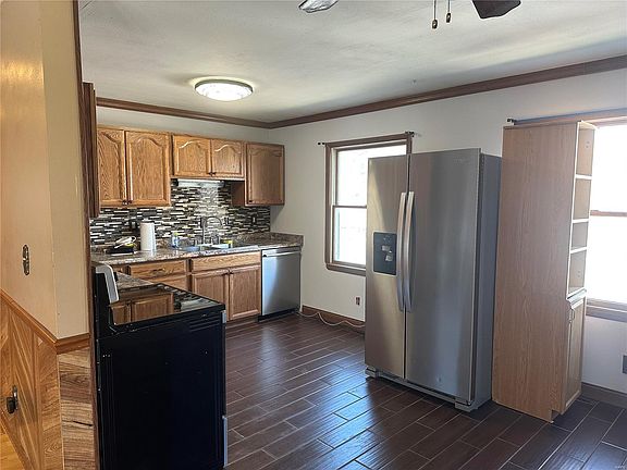 Two bedrooms and one bathroom residential home with a fenced in backyard. Kitchen has a modern backsplash and contains dishwasher, refrigerator, and range. Partially finished basement with a family room, sleeping room, and large laundry room. Home has one garage door, new garage door has been ordered and will be installed. Located near Oakwood School. Located on dead end road. Enjoy the outdoors from the front porch or the privacy of the backyard.
