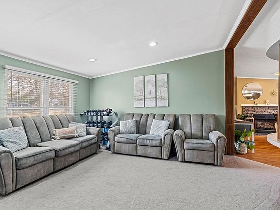 Welcome Home! This charming property boasts 3 bedrooms, 2 bathrooms, and a cozy fireplace, perfect for chilly evenings. The open concept kitchen is ideal for entertaining, while the private neighborhood offers peace and tranquility. Outside, you'll find two sheds for extra storage, a circular driveway, and almost 2 acres of land. The doublewide is on a fixed foundation which makes financing easy. This home is ready for you to move in and start making memories.