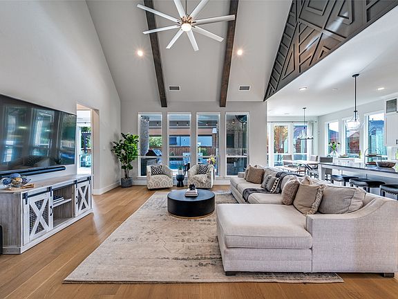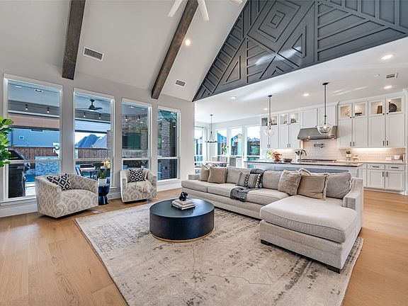 Welcome to this stunning north-facing, one-story masterpiece in the prestigious Star Trail community, perfectly positioned within highly acclaimed Prosper ISD and moments from the Dallas North Tollway, offering unmatched convenience to all of DFW. This remarkable home is the true definition of luxury living, crafted with exquisite custom woodwork, soaring ceilings and thoughtful details throughout. Step inside to an open, elegant floor plan that feels like a model home. The chef’s and baker's dream kitchen is an absolute showstopper, featuring high-end Wolf appliances, including a commercial-grade stainless steel 8-burner range with an additional oven, pot filler, and an extraordinary custom walk-in pantry, perfect for bakers, entertainers, and culinary enthusiasts. The home also includes programmable electric shades, a built-in office desk, and a true three-car garage. The floorplan is drenched in natural light, creating a warm and welcoming ambiance in every room. The backyard is a private resort of its own, complete with a heated sparkling pool, relaxing spa, outdoor kitchen, and a cozy fireplace designed for year-round enjoyment. With the PGA, upscale dining, shopping, and countless local amenities just minutes away, the lifestyle this home offers is truly unparalleled. Located in one of Prosper’s most sought-after neighborhoods, Star Trail provides an exceptional amenity center, pools, tennis courts, pickleball courts, serene walking trails, and vibrant HOA-hosted community events. Every element of this home and community is designed to elevate your lifestyle. This is an absolute must see luxury, convenience, and resort-style living all wrapped into one extraordinary property. Don’t miss your opportunity to make this showstopper your forever home.