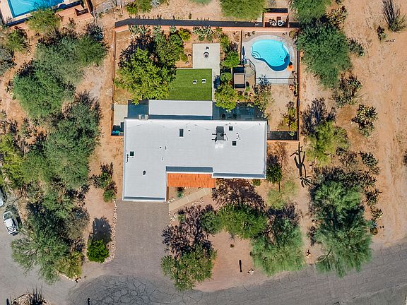 The resort style rear yard boasts a fabulous heated pool, separate grassy area, multiple play places and specimen plantings. Large covered patio, fire pit and mountain views add to the wonderful space. Roof and windows recently updated and adobe recently sealed.