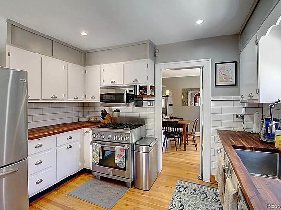 GORGEOUS classic Tudor in the heart of Park Hill! Home offers updates without the lots of vintage charm! Home offers 4 Bedrooms and 2 Bathrooms, original hardwood flooring, curved archways between rooms, and built-ins. Spacious Living Room with incredible fireplace alcove. Formal Dining Room with serving door leads to beautiful updated Kitchen. Kitchen features butcher block countertops with decorative subway tile back splash, stainless-steel appliances with professional gas stove, and cozy eat-in nook! Main floor bathroom has been fully remodeled with double sinks, oversized shower, and deep soak tub. Enjoy the fine finishes such as Ann Sacks marble and glass tile floors, Phylrich faucets and a Fleurco tub. One of the upstairs bedrooms has new closet wardrobe. New finished basement has non-conforming bedroom with private bathroom, spacious Rec Room, and lots of storage. Escape to your private sanctuary in the beautifully landscaped back yard with 2 flagstone patios, mature trees and established landscape. 15-minute walk to City Park and Kearney in Park Hill! 1-minute walk to 17th avenue to stroll along this beautiful street. 2 blocks from Marczyk Fine Foods which is a classic, top rated specialty store for fresh meats, Italian specialties and more. Great Park Hill schools. Lease available for 2 years or longer with renewing options. Renter responsible for all utilities, garden and yard maintenance. First month rent, Last month rent and security deposit due at lease signing.