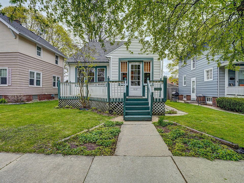 3 bedroom bungalow with old world charm, sun-drenched rooms, hardwood floors and natural woodwork. Spacious living room, dining room and kitchen along with full bathroom & bedroom on the first floor. 2 bedrooms upstairs. Enjoy sitting on the deck out front or on the patio in the backyard. Full basement with tall ceilings. Updated electrical, new furnace in 2020, storm windows in 2018, water heater in 2015, roof in 2010. 3 window A/C units included. No garage but potentially space to build one and a shed for storage.
