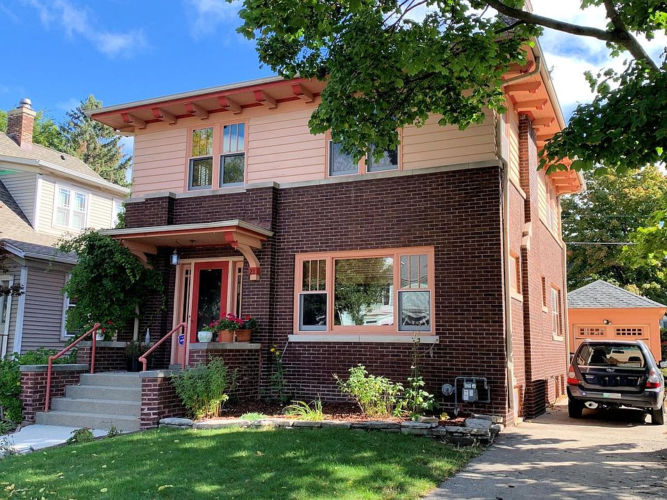 Bright and sunny 2 story brick home in the historic district. Foyer has an open staircase and coat closet. Large living room with fireplace and built-in book shelves. Formal dining room with built-in corner china. Snack bar/island in kitchen. Upper level features a spacious master bedroom with a sitting room that is bright and sunny, 2 additional bedrooms, built-in hall storage, large walk-in storage closet, remodeled full bath with ceramic tile and double vanity with granite top.