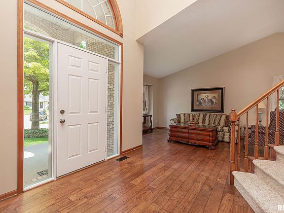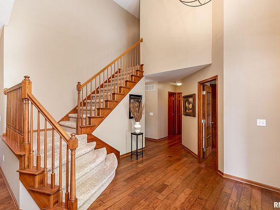 Nearly 4000sqft 5-bed/4-bath home on a quiet Bettendorf cul-de-sac has been extremely well taken care of by the original owner and it shows from top to bottom! 18' vaulted ceilings down to Gorgeous Golden Hickory engineered hardwood flooring throughout the main level. Kitchen boasts newer granite counter and appliances (2016 & 2018), built-in lighted hutch in dining room. A screened in deck and open area deck are right off the eat-in kitchen area, PLUS a deck off the master that overlooks trees and the rippling sounds of Duck Creek. The master features a large updated walk-in shower with skylight, walk-in closet, newer carpet in master, hallway, and the three upper level bedrooms, which are all above average in size! The 1,200 sqft of finished space in the walkout basement provides great value and living space: a quiet office, workout room, large rec room with a bar plus a full bath, 5th bedroom and plenty of storage. Newly painted 3 car garage opens to backyard retreat. Hurry!!