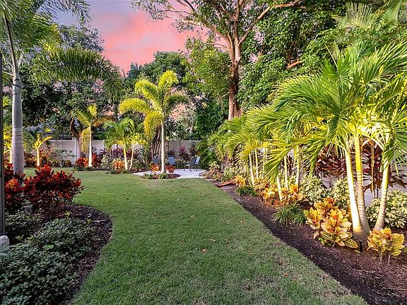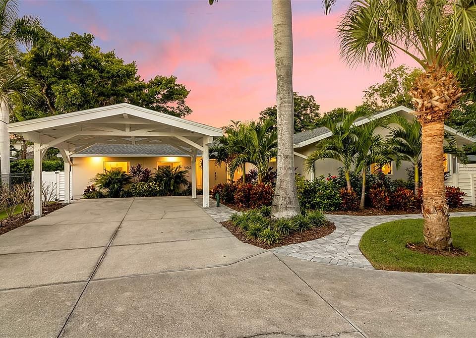 On a lush one-third-acre homesite in desired Pine Bay Estates, this single-story residence has been entirely rebuilt and elevated through a comprehensive, design-forward renovation exceeding $1.1 million. The result is a serene coastal haven where timeless craftsmanship meets modern luxury. A full interior transformation opened the home to light, flow and functionality. The newly relocated chef’s kitchen features bespoke cabinetry, premium finishes and a full suite of Thermador appliances, all thoughtfully positioned to overlook the tropical gardens. Wide-plank flooring carries through every room, complemented by exposed beams, curated lighting and refined architectural details. Every major system has been replaced or upgraded, including all-new HVAC, a tankless water heater, new plumbing and water lines, new insulation, and hurricane-rated windows, doors and sliders, ensuring enduring comfort and peace of mind. The home’s heart is its stunning sunroom, surrounded by glass and bathed in natural light, an ideal space for morning coffee, quiet reading or gathering with guests while taking in the lush, mature landscaping. Three beautifully redesigned baths, a gas fireplace, custom California Closets and a new laundry suite continue the theme of thoughtful luxury throughout. Outside, the home lives like a private botanical retreat. A full landscape redesign brought in layered tropical plantings, ambient lighting, new walkways and hardscape, all-new fencing and gates, and a pool with a replaced deck and rescreened cage. A new roof, fresh stucco exterior, carport enhancements and upgraded exterior lighting, complete the transformation. With its rare combination of single-level living, expansive grounds and meticulous top-to-bottom renovation, this Pine Bay Estates residence offers an inspired West of Trail lifestyle just moments from Southside Village, Siesta Key and Sarasota’s finest dining, beaches and marinas.