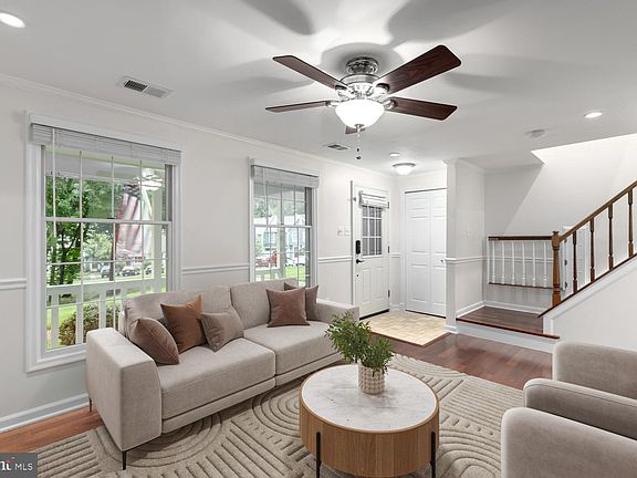 Tucked into the peaceful Birchfield Woods community in Reston, this beautifully updated end-unit townhouse offers 3 bedrooms, 2.5 bathrooms, and stylish living across two spacious levels. Natural light fills the inviting family room and hardwood floors flow throughout the main level. The kitchen has been tastefully updated with white cabinetry, stainless steel appliances, and modern finishes. Just off the kitchen, the dining area opens to a flexible sitting space complete with a custom wet bar—perfect for entertaining or relaxing evenings at home. Step outside to the gorgeous stone patio, a serene retreat that backs to a private common area. Upstairs, the spacious owner’s suite features custom closets and an updated en-suite bath. Two additional bedrooms, each with their own custom closets, share a beautifully renovated hall bath. Fresh paint throughout the main level and bedrooms makes this home truly move-in ready. Enjoy all the best of Reston living with access to nearby trails, pools, playgrounds, shops, and Metro. This one is not to be missed!