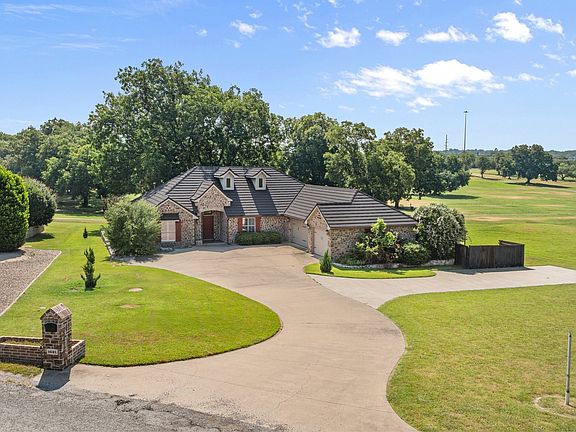 Golfer's delight in Lakewood Hills is ready for new owners. Expansive patio with remote control screening offers views of the Granbury Country Club course and location is a golf cart ride to the clubhouse.  Spacious, open concept living with fireplace, dining, and kitchen area is perfect for entertaining.  Primary bedroom has ensuite bath and huge closet.  Special features include plantation shutters throughout, built in cabinetry, tiffany style light fixtures, stained concrete flooring, updated bathrooms & kitchen with unique style for that discerning homeowner. Plenty of parking for guests and 2 car garage with golf cart garage is attached.  Great location to enjoy the local scene of Granbury, Texas, the Celebration Capital of Texas! Shopping, restaurants, music, and all the fun is happening here most weekends. Fishing and water sports are just down the street on Lake Granbury. No HOA, close to all the fun, spacious lot & home make this a must see in person. Move in ready just in time to celebrate the holidays!