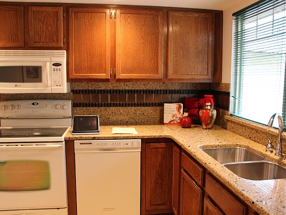 Discover Shady Tree! Small, 48 unit complex. Exceptional one-level, duplex-style condo. Large living room with cathedral ceilings, cozy brick frplc, knotty pine finishes, dining area off well-designed, updated kitchen with quartz counters. Two roomy bdrms, full bath, laundry rm. Two car garage with addtl storage. Follow the gated, brick path to secluded patio in back; drought-resistant gardens, tastefully landscaped. Tucked away near Adelaide Park. Minutes to amenities. Ready to close!