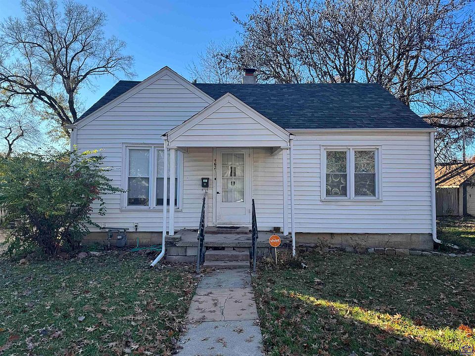 This 1949 home is ready for a face-lift. Situated in a desirable location - 2 blocks from Washburn University's northwest corner - it is surrounded by nicer homes. Listed at $40,000 below county valuation, it offers 2 bedrooms, 1 full bath, living room, dining room, and kitchen, plus basement. The backyard has chain-link fencing and a small detached garage. Buyer shall accept the property strictly as-is, with no Seller-provided guarantees or repairs. Buyer shall also accept responsibility for all items in the home, basement, garage and yard/driveway. Basement is not entirely visible without removing items first. Offers are subject to probate court approval. Inspections are welcome for informational purposes only.