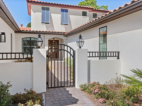 Stunning home on a spectacular 0.5 acre lot! This fabulous property just underwent a complete renovation, including a new roof and windows, 2 new HVAC units, 2 new tankless hot water heaters, new landscaping and pavers. As you enter through the private courtyard, you will be amazed by the bright, open living area with floor to ceiling windows, giving you stunning views of the resort-style pool, lake, and golf course. The oversized chef's kitchen is an entertainer's dream. It includes plenty of storage, high-end appliances from Thermador and Wolf as well as an expansive 15 ft island, separate built-in bar area and a large walk-in climate controlled wine cellar. A convenient home office with plenty of natural light overlooks the courtyard. The primary suite, located on the first floor, boasts amazing storage with 4 walk-in closets and a bathroom beyond compare with his and her vanities, a huge low curb shower and a luxurious soaking tub. A mother-in-law suite with private entrance and a gorgeous oversized bathroom with separate shower and soaking tub has a large, attached room that can be used as a separate living space or additional storage area. Also on the main floor is a third bedroom, which is currently being used as an office and exercise room. Upstairs, you will find 2 additional bedrooms with amazing natural light and private baths. Plenty of parking is available for your guests with the 2.5 car garage and large paver driveway. A convenient EV charger makes charging electric vehicles quick and easy. The fabulous backyard is a wonderful setting to entertain your guests and enjoy beautiful sunsets and the Baytowne fireworks. In addition to the pool and hot tub, an outdoor kitchen includes a built-in gas grill, refrigerator and Green Egg. There is even a turf area outside the master bath for your furry friends. Come see this amazing, move-in ready dream home!