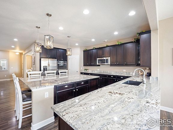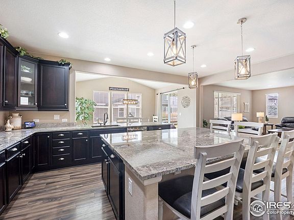 Stunning Corner-Lot Home with Owned Solar, Gourmet Kitchen & Finished Basement! Luxury meets livability in this immaculate 2017-built home where every detail has been thoughtfully designed. The oversized 3-car garage with soaring 11' ceilings to the chef's dream kitchen featuring espresso cabinetry, slab granite countertops, double ovens, walk-in pantry, and an oversized 68"x94" island with seating for six - this home was made for gathering, entertaining, and everyday comfort. Rich luxury flooring flows throughout the spacious main level, with bonus sunroom. Convenient main-floor bedroom with full bath. Upstairs, retreat to the serene & spacious primary suite with a spa-inspired bath and two generous walk-in closets. Three additional bedrooms, a large & airy loft, and an upstairs laundry room provide space and flexibility. The finished basement expands your living area with an extended great room - perfect for movie nights, game days, or guests - plus abundant storage. Enjoy energy-efficient living powered by an owned solar system, delivering comfort and savings.Outdoor living shines with a covered patio overlooking the beautifully maintained corner lot, where numerous windows flood the home with natural light and open views. Ideally located just one block from Grandview Elementary and moments from trails, shopping, and dining - this home offers the perfect blend of modern design, energy efficiency, and heart. Experience the best of Colorado living in a home that truly has it all!