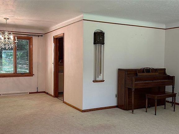 Charming Ranch home set back from the road on over 7 wooded and private acres. Secluded backyard for added privacy, enjoyed on your stone patio or in the cute Gazebo. Well maintained home with 2 fireplaces, one in the Living Room and one in the Recreation Room. Updates include newer furnace, well pump, glass block windows in the basement and windows throughout the first floor. Finished lower level with a Sprawling Recreation Room with tile floors and stone a fireplace. In addition, there is a 2nd kitchen in the basement. Provides additional living space and entertainment. Just needs your TLC. As Is.