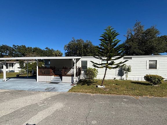 This well-kept 2-bedroom, 2-bath home is located in a desirable 55+ golf community in Kissimmee, Florida. Inside, you'll find a bright, welcoming kitchen featuring white appliances and plenty of natural light. The kitchen opens directly into a spacious living area with cathedral ceilings and built-in shelving, creating an open and comfortable layout perfect for relaxing or entertaining. A charming front porch greets you at the entrance, offering plenty of space for outdoor seating. The oversized primary suite includes its own bathroom with a walk-in shower and an extended vanity area, while the second bedroom provides generous closet space. Sliding doors from the expansive living area that leads to a large carport that easily accommodates two vehicles, along with a sizable storage shed. With a new roof installed in 2022, this home offers outstanding value and is ready for its next owner! This vibrant 24 hour gated 55+ community Security is loaded with amenities that include restaurant style dining, a sparkling swimming pool, a heated indoor swimming pool, indoor and outdoor hot tubs, a fitness center, an 18-hole golf course, pickle ball, tennis courts, shuffleboard, and a friendly and vibrant activity center with year-round events. Theres's Marina, RV, and boat slips. Professional Trainers can be on site in the exercise room and aquatic classes are available with and wellness center. Theres a pet park, a salon, home health services. There is a community church in the community that offers services in English and Spanish. There's adjacent shopping that includes a Publix supermarket with golf cart parkin. Bus services are available to, Aldi, Walmart, the Loop, Home Depot and more. With a monthly lot rent of $702 that covers cable, water, trash service and amenities included. This home offers exceptional value in a sought-after location. Don't miss your chance to join this welcoming and active community-call USA Mobile & Manufactured Home Sales today to schedule a tour!