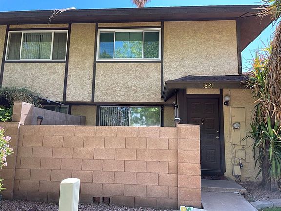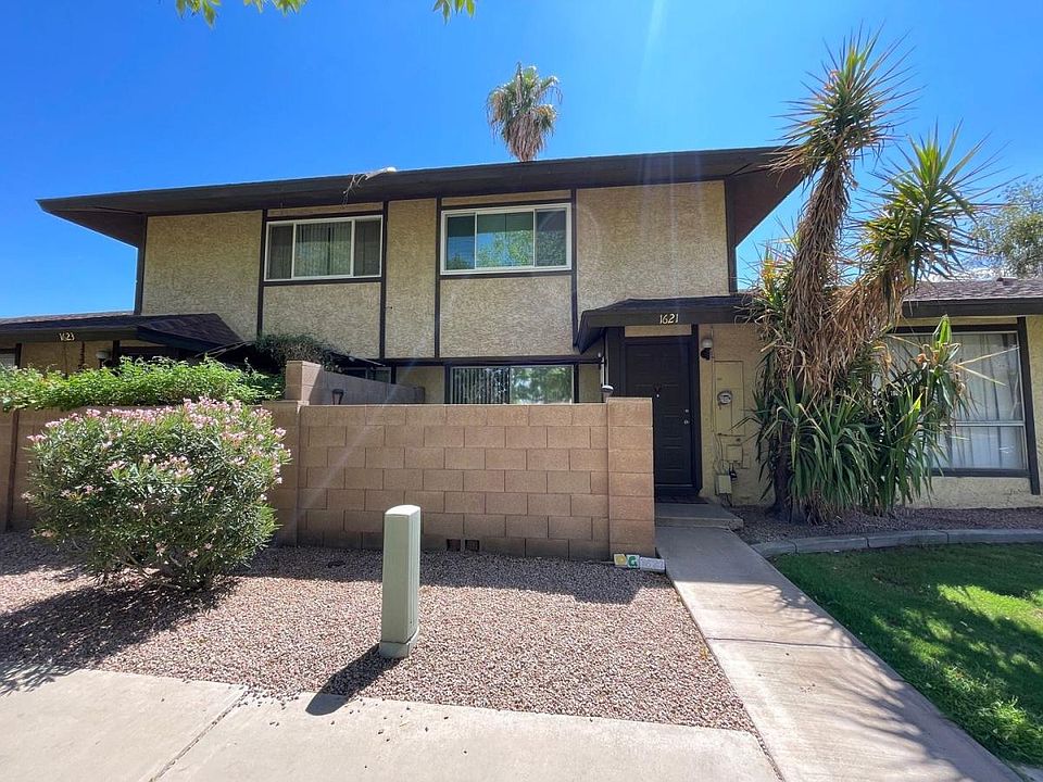Charming 2 bed, 1.5 bath 2 story unit in Tempe. Close to ASU! Includes private front and rear patios and cool community pool, hot tub and tennis. The Living Room and Dining Area have easy care wood laminate floors, high ceilings and neutral palette. The Kitchen has crisp white appliances and cabinets. All appliances including refrigerator, dishwasher, washer and dryer. Half bath downstairs for guests. Upstairs has full bath. There are two spacious bedrooms with tile flooring upstairs. Carport parking directly behind the unit. Grassy play areas and mature shade trees in the community. Convenient location next to the freeway and on the bus route to ASU. Excellent investment opportunity. HOA fee includes exterior and roof maintenance. Earn equity while your student attends college!