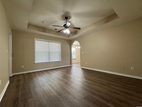 Fresh neutral paintFenced backyardCorner lotElegant arched doorwaysLuxury lvp flooringTray ceilingsCovered patio