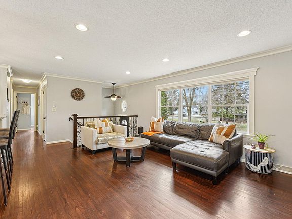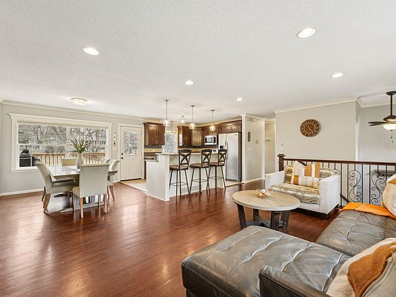 backsplash, huge center island and spacious dining room. Recessed lighting. Upstairs is wonderful wood