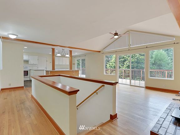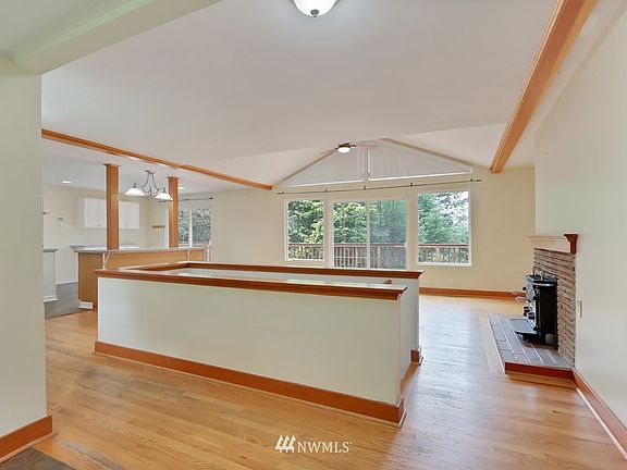 Three Tree PointRetreat ! Location, location, location Wonderful 2,200 sq ft home with sunny open floor plan & cathedral ceiling. Kitchen w/ built in buffet and island w/seating for 4. Enjoy indoor/outdoor living hardwood floors with 2 sliders to gracious new spacious deck. 3 bedrooms could be more, 2 full bathrooms, 2 wood stoves, alarm system, office space, rec room, amazing solid panel doors and loads of storage. Beautiful private quiet fully fenced/gated 15,800 sq ft lot w/green view. Room for gardens, gazebo and fire pit. Short walk to the Puget Sound enjoy the beach, sit outside w/a cup of coffee at 3 Tree Point Store watch for eagles and hear the seals barking. EZ commuter location close to dwntwn Seattle&Airport. Staging is removed