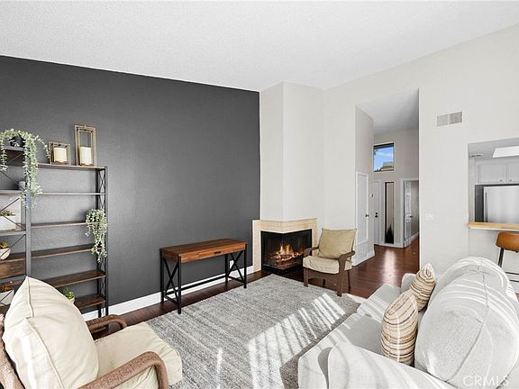 Beautiful, high-ceiling, one-bedroom condo in the Resort-Style, gated community of Lake Terrace in the City of Paramount. Enjoy the peaceful sound of running streams throughout the complex. This is a large top-floor condo with views of the greenery, streams, and pool. Upon entering the home, you step into the spacious living room, filled with natural light highlighted by panoramic windows and a warm, welcoming fireplace. The living room seamlessly flows into the formal dining area. The kitchen offers plenty of cabinetry, granite countertops, and a breakfast nook that opens to the living room, creating a seamless open floor plan. Direct access to the large balcony from the living room allows you to host and enjoy the outdoor space with family and friends. The master bedroom features high ceilings, ample storage including two closets, and private access to the bathroom. Washer and Dryer are located within the unit. The HOA is in the process of upcoming updates, including the renovation of the roof, stucco, and siding, as well as the installation of solar panel carports. Additional improvements include a full deck replacement, upgrades to all stairs and balconies, and fob access to both gates. This unit comes with two assigned parking spaces, one of which is covered, and additional guest parking is readily available. The sales price includes all appliances. Enjoy exclusive access to a key fob-entry mailroom and refreshing pool within the community. This condo has been meticulously maintained and is fully turn-key. Welcome home!