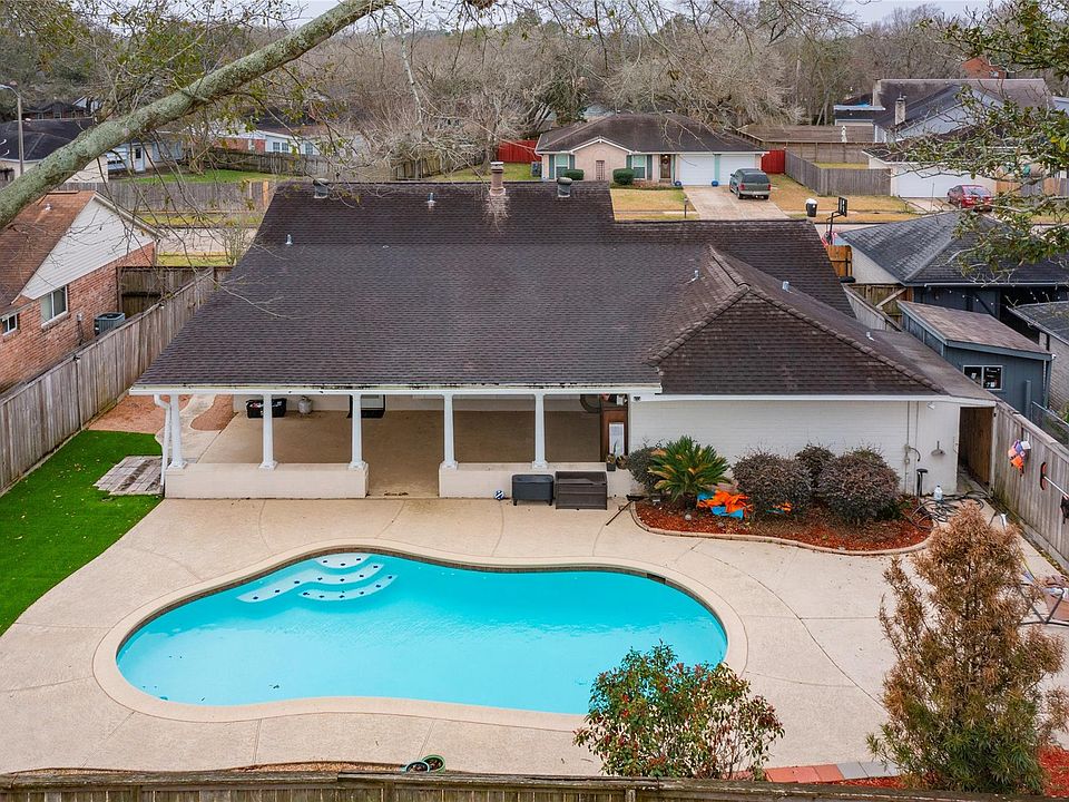 A well-maintained and updated 1-story home welcomes you through the entry, highlighted with luxury vinyl flooring throughout the living spaces. The high vaulted ceiling in the living room with a quartz stone wood-burning fireplace, a lot of natural light, and a window seat on top of the space. The second bath is highlighted with a double sink vanity, lighting, and double mirrors. The kitchen that any chef will fall in LOVE with, quartz countertops, oversized center island, and tile backsplash. Imagine the fun you can have with this pool and large backyard oasis! Primary bathroom is updated with frameless shower door. Second bathroom is luxuriously remodeled. A Definite MUST see! Washer, Dryer, Refrigerator, furniture will stay. Sure can't this at this price. Close to everything i.e. Baybrook Mall, NASA, and major freeways. Backyard is great for kids to play and just entertaining.