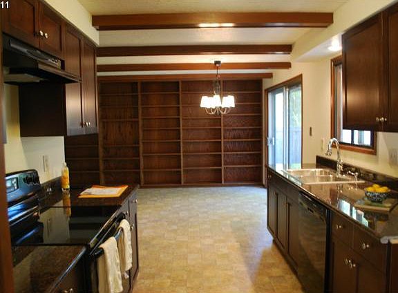 - Beamed Ceilings, Bookcases, Family Room Kitchen Combo, Granite, Vaulted Ceiling(s), Bathroom