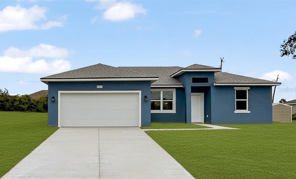 Welcome to this brand-new 4-bedroom, 2-bathroom home in the desirable Marion Oaks community of Ocala, FL. This thoughtfully designed residence boasts a split floorplan that creates added privacy for the Primary Suite, while the spacious Great Room serves as the heart of the home with its open and inviting layout. Throughout, you’ll find stunning luxury vinyl flooring and stylish upgraded lighting and fixtures that give the home a modern yet timeless feel. The kitchen is a chef’s delight, featuring sleek port white quartz countertops, stainless steel appliances, abundant cabinetry, and a generous pantry that provides both functionality and style. The Primary Suite is your private retreat, offering a double vanity, a luxurious soaking tub, a walk-in shower, and a private water closet for maximum comfort. Outdoors, the large backyard and covered porch extend the living space, perfect for entertaining or simply relaxing. With no HOA, a septic system, and public water, you’ll enjoy both freedom and convenience. Expertly chosen finishes ensure both beauty and easy maintenance, making this home completely move-in ready. Whether you’re looking for a place to settle down or a stylish new home to start your next chapter, this Marion Oaks gem has it all.