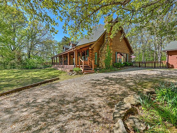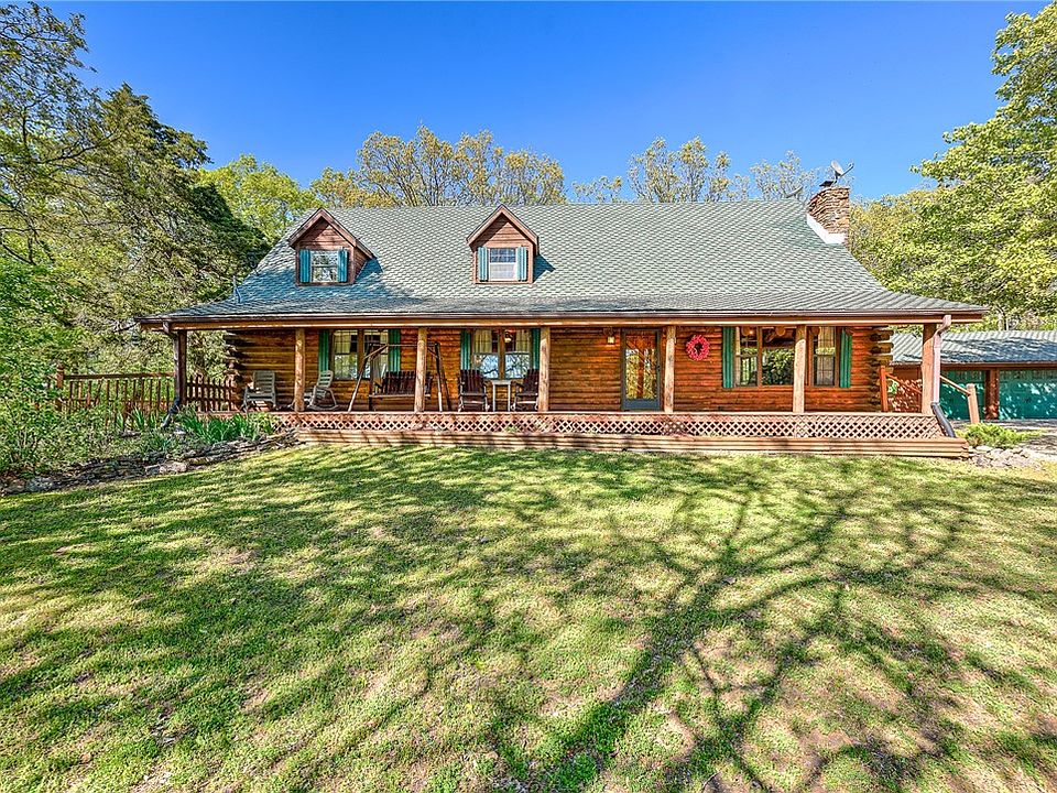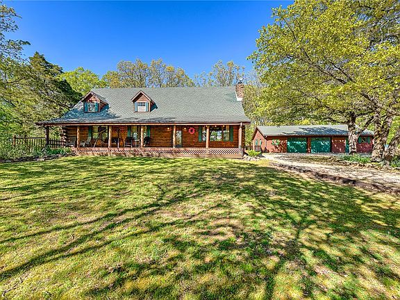 Welcome to your very own secluded paradise in the woods! This charming log home offers an escape from the busyness of life. Nestled among towering trees and serene nature, this home boasts a cozy, rustic ambiance that will make you feel right at home. Step inside to discover an open, spacious living area, complete with a wood burning fireplace/insert, cathedral ceiling, and loft area. The kitchen is equipped with everything you need fore easy meal prep. Just a few of the standout features of the property are the spacious back patio with entertainment area and hot tub, 1200 sq foot shop, large fenced garden area, detached garage with office, and close proximity to Beaver Lake. With it's tranquil setting and breathtaking natural beauty, this property offers the ultimate in privacy and seclusion. Enjoy your morning coffee on the spacious front porch, surrounded by the sounds of nature. This is the perfect retreat for anyone looking to escape the stresses of everyday life and bask in the beauty of the great outdoors.