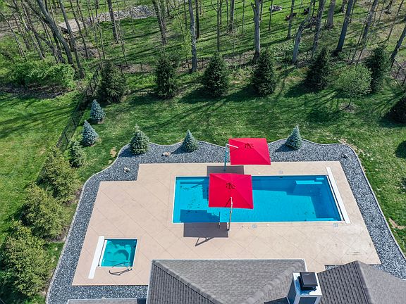 PRISTINE 6 bedroom, 6.5 bathroom home in Fortville! NEARLY brand-new & move in ready with TONS OF NATURAL SUNLIGHT every which way you turn! Each bedroom has its own full bathroom! Upgrades galore include: wider doorways, curved archways, high ceilings, dimmers on each switch, & bump outs making this the largest Richwood Floorplan in the neighborhood. Gorgeous open kitchen with walk in pantry, cabinet storage under the massive island, and double convection ovens. Master suite boasts high ceilings, and beautiful bathroom with a SUPER SHOWER and large walk-in closet. HUGE open finished basement with 9 ft ceilings complete with a full bar and full bathroom for the 6th bedroom. Fiberglass, heated pool & hot tub installed in '22 with pivoting umbrellas and color changing lights! Backyard is an oasis with mature trees strategically placed/planted for complete privacy!! Reverse osmosis water softener. 3 car garage with epoxy floor and service door. Bump out extension on driveway for easy backing in and out of the garage. Hardscape landscaping for easy maintenance with color changing lights as well! Serene screened in porch with 15 ft ceilings, double fans, gas fireplace and heater is the perfect spot to take in the nature views! MUST SEE!