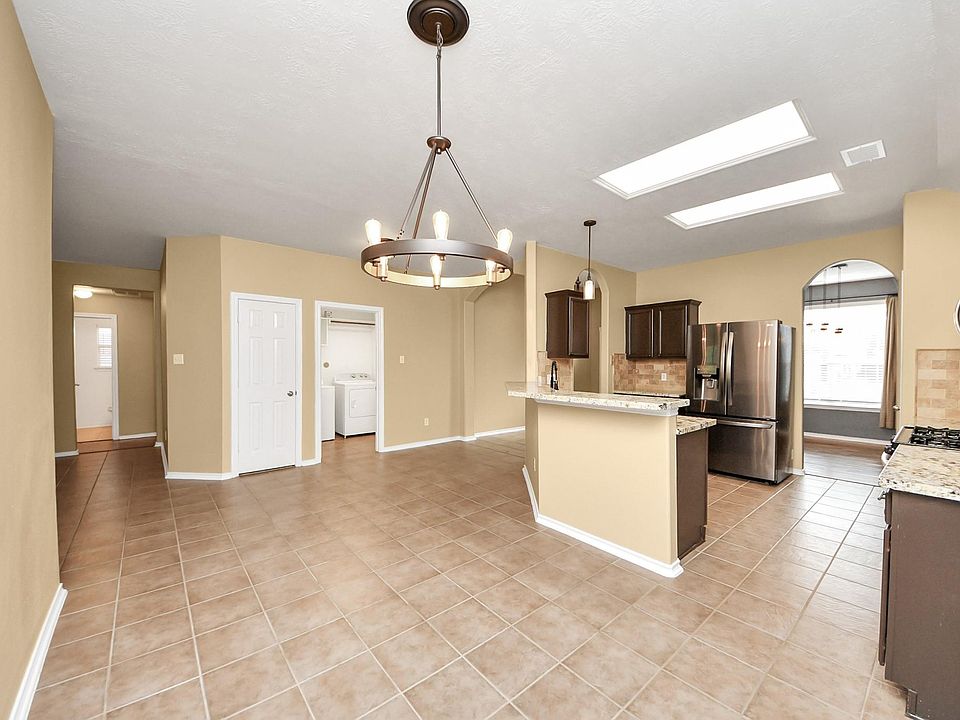 WASHER, DRYER & REFRIGERATOR INCLUDED!! Beautifully updated 3-bed, 2-bath home in highly desirable Fairfield! This 1,860 sq ft single-story offers a bright open floor plan with wood/tile floors throughout, spacious kitchen/family room combo, gas-log fireplace, and plenty of natural light. The primary suite features double vanities, soaking tub, separate shower, and walk-in closet. Upgrades in 2025 include a stylish new front door, new bathroom mirrors, blinds in every room, updated landscaping, fresh interior paint, and AC serviced with an energy-efficient system installed in Aug 2025. Enjoy outdoor living with a covered patio overlooking the fully fenced backyard, complete with sprinklers for easy maintenance. Located on a quiet street close to Fairfield's parks, pools, trails, and top-rated CFISD schools, with quick access to Hwy 290 and nearby shopping/dining. Two-car garage, move-in ready, and full of charm!