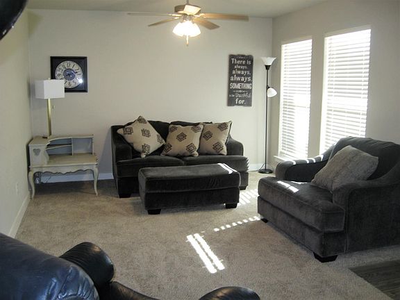 Bell Farms: Well Cared for home with three bedrooms. Square footage has been utilized for maximum use. Molding added to cabinets in Kitchen and cabinets added to bathrooms. Ceiling Fans added. Garage pull down for attic added. Eye catching exterior with blue vinyl and brick siding. Just the right size backyard for low maintenance care. Nice porch for watching the sunset and visiting with neighbors. Refrigerator, washer and dryer will convey with acceptable offer.
