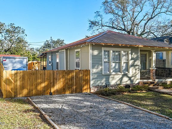 What an opportunity! Own an adorable cottage just steps from the beach! This circa 1900 cottage has been lovingly restored to better than new! 2 bedrooms and 2 baths, LVP flooring, washer and dryer, metal roof and storage unit outside that matches house. Check out the tin ceilings in the kitchen and one bedroom! The covered patio is wonderful! So spacious and there is hot and cold water, power and gas ready for an outdoor kitchen. Plenty of room for parking. Fenced yard. This would make a wonderful home, 2nd home or Air BNB/VRBO rental.