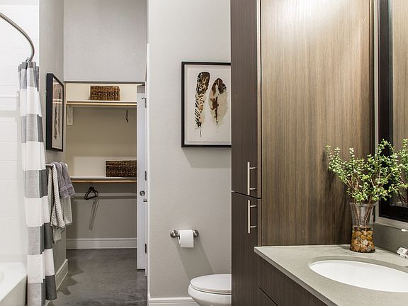 Experience contemporary urban living at its finest at this exceptional Austin apartment community. Offering 1- and 2-bedroom apartments, these modern residences showcase spacious layouts with high-end finishes and fixtures. Oversized windows invite abundant natural light, revealing captivating city views and creating an inviting atmosphere. Residents are treated to an impressive array of premium amenities, including a rooftop deck featuring a pristine pool and inviting lounge areas, a state-of-the-art fitness center, and a pet-friendly environment complete with an on-site dog park. Social spaces, such as a clubroom and outdoor grilling areas, encourage connections with neighbors and friends. Ideally situated just moments from downtown Austin, residents enjoy seamless access to the city's vibrant cultural scene, diverse dining options, shopping districts, and entertainment hotspots. These apartments embody Austin's dynamic lifestyle, offering a unique and vibrant living experience amidst the bustling cityscape. Apartment Amenities Studio, 1 and 2-Bedroom Homes Available Gourmet Kitchens with Two Color Schemes Kitchen Prep Island with Pendant Lighting Quartz Countertops Stainless Steel Appliances Spacious Walk-In Closets Custom Built-Ins Spa Inspired Bathrooms with Soaking Tubs Wood Plank-Style Flooring USB Charging Outlets Private Balconies Individual Storage Units Washer and Dryer Included Community Amenities Wellness Center with Yoga, Fitness Studios and Classes Rooftop Terrace with Fire Pit and Grilling Kitchen Resident Lounge with Gourmet Demonstration Kitchen Aqua Lounge with Games, TVs and Catering Kitchen Bike Storage Available Media Lounge Meeting Areas Self-Service Printing Station WiFi in All Common Areas Pet-Friendly Community With Enclosed Pet Park Adjacent to Plaza Saltillo/Metro RailLocated on the Vibrant East 6th Street Corridor Walking Distance to Dining, Shopping, and Nightlife Ground Floor Retail, Services and Restaurants