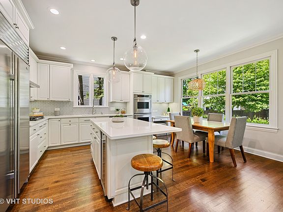 Wonderful newer construction beauty in sought-after walk-to-everything McKenzie location. Recently and tastefully updated, there is nothing to do but move in and enjoy! Perfect layout for today's buyer with generous open-concept living on the main floor. Beautiful foyer with handsome wallpaper welcomes you in. Formal living room with wood-burning fireplace opens to both the first floor office and dining room. Lovely just-updated trendy white kitchen offers roomy table space and generous island with seating. Kitchen looks out over the back yard and opens to the family room - perfect for today's lifestyle. The second floor features a fabulous spacious master suite with two walk-in closets and beautifully just-updated white and marble bath. Three secondary bedrooms offer custom closets and en-suite bathrooms. A second floor laundry completes the second floor. The lower level includes an awesome rec room, 5th bedroom with full bath, large exercise room and utility room with great storage. Wow! Fully-fenced lovely and private backyard with built-in fire pit is perfect for entertaining and family fun! This location cannot be beat! Walk to town, restaurants, shopping, the Metra, McKenzie Elementary, Vattman Park, Gillson Beach, Lake Michigan, bike path and MORE! Don't miss this one!