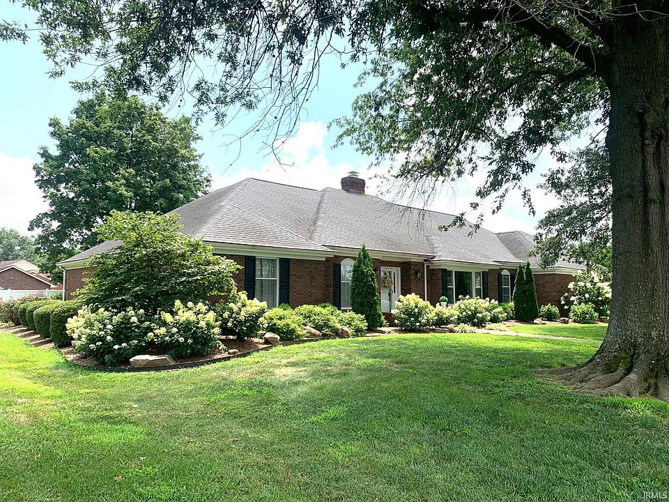 One level brick home with 0ver 3400 sq ft. If you love a country view and like living on the east side you will love this level lot with unbelievable landscaping all around the home. Nature at it's best! Enter into this ceramic tiled foyer into your formal living room opening into your formal dining room. From dining room thru double doors into your large eat-in kitchen with pretty bay window. Lots of pretty wood stained kitchen cabinets with new microwave and 1 year old dishwasher. All appliances included. Your 23x18 ft kitchen with an extra 11 ft walk-in pantry. Family room with wood burning fireplace with gas logs. Year around room off of family room with windows all around opening onto patio. 22x15 ft Master bedroom with double walk-in closets, master bath suite with walk-in shower & tub, double sink vanity. Back door foyer with full bath and laundry off foyer and garage. Side entry garage with new drop stairs. Realtor Owned.