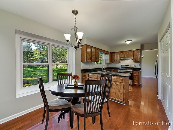 Immaculate & ready for move in! Oversized tree lined lot offers spacious 4 bedrooms & 2.5 baths. Interior professionally painted in today's neutral grey. Hardwood flooring on main level & all new carpet on second floor. Large living room & separate dining room with new fixture. Newly white painted cabinets (not shown in photos), granite countertops, SS appliances-new stove, side by side washer dryer. Family room open to kitchen offers volume ceiling w/wood beam, wood burning fireplace with gas start. Sliding door leads to large wood deck overlooking private yard. First floor laundry. All bathrooms updated with new vanities, ceramic flooring & decorative tub surround, new toilets, fixtures and mirror. Spacious primary bedroom w/private bath. Attached two car garage w/pull down attic. Large crawl. Bus to schools & Pace to DG train at corner. Low taxes, top rated schools, parks, park district & active cul-de-sac. Centrally located to shopping, dining, expressways & both airports.