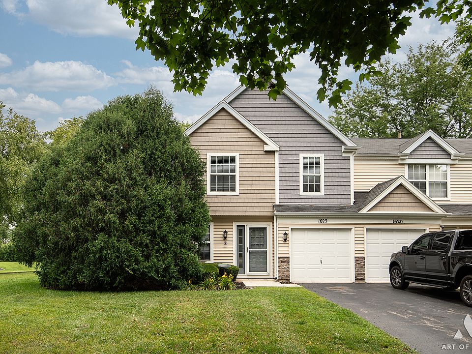 **MULTIPLE OFFERS RECEIVED - Calling for highest and best, due Monday August 25 at 5pm** Rarely-available end-unit College Green townhome. Freshened-up 2-bed and 1.5 bath unit with recent paint work. New HVAC, heating system and humidifier. Newer kitchen appliances, with brand-new fridge. Newer garage mechanicals, fresh curtains and window screens. Kitchen and dining area welcomes you to your home, and opens up to family room with vaulted ceilings, cozying up to the fireplace, and provides an outlet to the patio. Floor-to-ceiling windows, and skylights throughout. Lovely vinyl plank floors in the main level. Both bedrooms are on the second level with shared full bath featuring new tiles, bath fixtures, double sinks and a good-sized bathtub. Roof is less than 5 years old, and home opens to a good-sized patio that opens up to nature and trails. Perfect for new homeowners or investors looking for great ROI with rental market in area (no rental cap or restrictions). South Elgin school district, and within minutes to Randall Road, providing access to amenities, shopping, restaurants and more! All showings will start during weekend open houses, by activation on August 21.