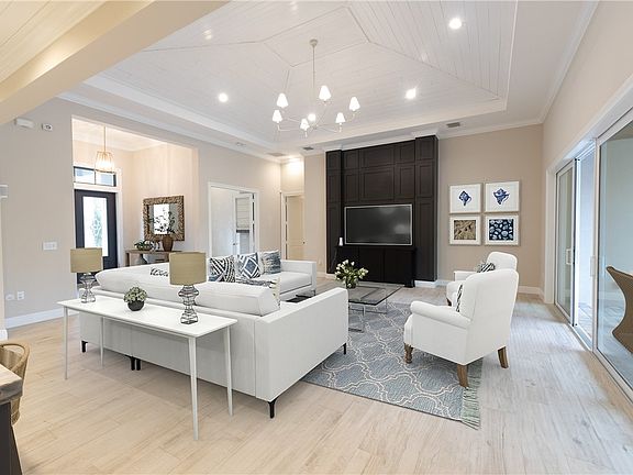 Screened lanaiSaltwater poolEnsuite bedroomsLushly landscaped yardSoaring ceilingsElegant detailsSoaking tub