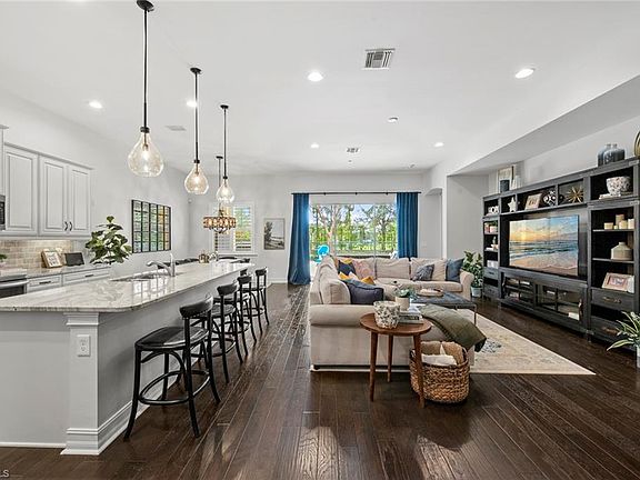 Step into this warm and inviting home in a prime North Naples location (WEST of 75), where comfort meets elegance in a well-loved and meticulously cared-for space. The first level features rich wood flooring, a spacious open great room floor plan, and an upgraded gourmet kitchen with beautiful granite countertops. A separate dining room (or home office!) adds flexibility, while a convenient half bath completes the space. The primary suite is also on the first floor, offering privacy and convenience. Upstairs, a large loft area provides versatile additional living space—perfect for a game room, playroom, media room, or home gym—accompanied by two guest bedrooms and a full guest bath. Step outside to an inviting covered lanai with elegant wood ceiling details, a large pool, and ample space for entertaining. Roll-down electric screens on lanai provide shade and comfort, while plantation shutters throughout add timeless style. The private backyard offers serene glimpses of the lake, creating a peaceful retreat. Located in Barrington Cove, a small gated boutique community, this home offers close proximity to North Collier Regional Park, Seed to Table, and top-rated Collier County schools. Just a short drive to 5th Avenue and the white sandy beaches of Southwest Florida, this is your perfect place to call home!