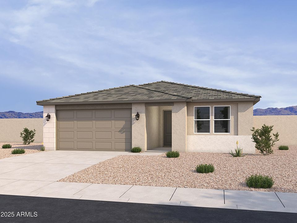 At the heart of the home, the kitchen shines with gray 42'' cabinets, quartz countertops, a mosaic backsplash, and a large island perfect for gathering. As part of the Milan Collection, it comes complete with stainless steel appliances—range, microwave, dishwasher, and refrigerator—and prewiring for pendant lights. Wood-look plank tile flows through the main living areas, leading to an open great room that connects effortlessly to a covered patio through a 4-panel sliding glass door, ideal for indoor-outdoor living. Additional highlights include 8-foot interior doors, 2-inch faux wood blinds, a washer and dryer, and elegantly finished bathrooms with White Sand quartz countertops and oval sinks. With its thoughtful layout, modern finishes, and welcoming design, the Lavender Plan is a home you'll love to live in every day.