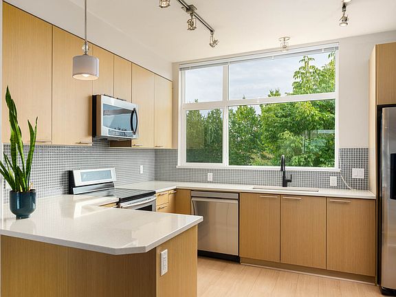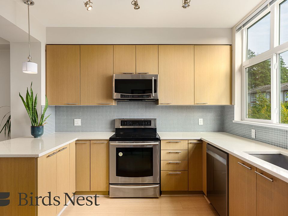 Welcome home to Breeze, perfectly positioned in one of South Surrey's most desirable neighborhoods. Nestled on a quiet, tree-lined street, this beautifully designed open-concept townhouse features laminate flooring, soaring over-height ceilings, and expansive floor-to-ceiling windows that flood the home with natural light. Step out onto your private balcony to relax and take in the peaceful neighborhood surroundings. The gourmet kitchen serves as the heart of the home, featuring custom cabinetry, quartz countertops, and premium stainless steel appliances, perfect for everyday living. Residents of Breeze also enjoy access to an array of amenities, such as a fitness centre, sauna/steam room, and an indoor lounge with billiards.