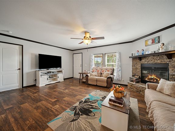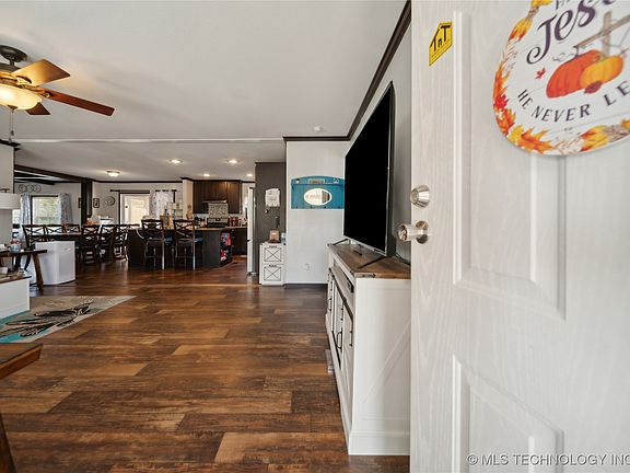 Nestled on approximately 1 acre, this 2014 manufactured home offers a country setting with modern conveniences. Featuring 4 bedrooms, 2 baths with the desirable split bedroom plan. This spacious home boasts 2 large living areas, perfect for relaxing or entertaining. Cozy up by the wood burning fireplace on cool evenings or enjoy the sunny days by the 24' above-ground pool. The kitchen is complete with a spacious island, pantry and has the open design you love! For peace of mind the property also includes an outdoor safe room that accommodates 12. Step outside to the covered front and back porches to take in the peaceful surroundings. With a location just minutes from town, you can have it all - comfort, safety and charm!