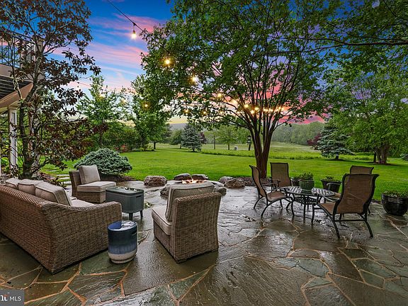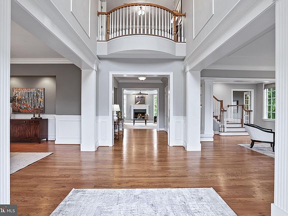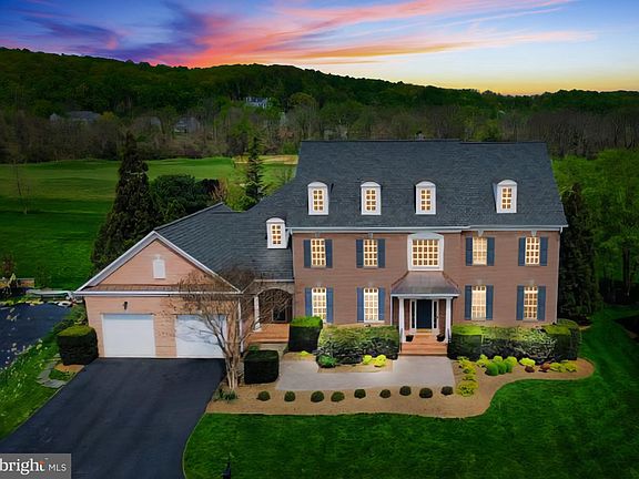 A masterpiece of style and function, this beautiful home sits on one of the most beautiful and tranquil lots in sought-after Raspberry Falls. Backing to the 4th fairway of the Raspberry Falls Golf and Hunt Club, with rolling hills in the background, this residence offers over 7,100 sq. ft. of finished living space across three fully finished levels with beautifully curated hardscaping & plantings, plus space to park four cars tandem in the garage. The rarely available North Landing model by Marquis Custom Homes features unobstructed sightlines from the two-story foyer through to the large family room windows, showcasing stunning views of the golf course and rolling hills beyond. With 10-foot ceilings on both the main and lower levels, 8-foot interior doors, and extensive trim work throughout, every detail reflects the quality of this high-caliber home. The gourmet kitchen is a chef's dream, equipped with top-tier stainless appliances including a Dacor double-wall oven, Viking professional refrigerator, Viking cooktop with range hood, Viking warming drawer, and Bosch dishwasher. The large center island is ideal for entertaining and casual meals. The expansive living room is perfect for hosting family holidays, while the cozy family room with a wood-burning fireplace sets the tone for relaxing evenings. A private rear office enjoys peaceful views of the expansive backyard and golf course. Upstairs, the primary suite includes a sitting area that opens to a private Juliet balcony, a spacious walk-in closet with custom shelving, and a luxurious en-suite bath with dual granite vanities, a frameless glass shower, and soaking tub. Each of the secondary bedrooms is generously sized, all with en-suite baths featuring granite vanities and tile flooring. The walkout lower level boasts 10-foot ceilings and full-size windows that flood the space with natural light. Highlights include a welcoming recreation room with a gas fireplace, an open billiards area, a mahogany wet bar with glass shelving and built-in lighting, and a walk-in wine cooler. A dedicated home theater includes built-in surround sound, HD projector, and screen. A fifth bedroom, stylish full bath with Carrara marble vanity, and a large gym with mirrored walls complete this level. Outdoor living is exceptional, with a low-maintenance composite deck off the kitchen, a flagstone patio with a recessed firepit and natural stone seating, and a second patio nestled beside a tranquil multi-tiered water feature. The lush, deep backyard includes a natural buffer with milkweed that attracts monarch butterflies, goldfinches, blue jays, and cardinals. The home sits on a quiet circle bordered by common area for added privacy and beauty. Located in Northern Virginia's premier golf course community, Raspberry Falls—a hamlet-style community of smaller neighborhoods separated by green spaces and the award-winning Gary Player-designed golf course—residents enjoy wide-open views, mature landscaping, a community pool, tennis courts, and a welcoming clubhouse. All just 10 minutes from downtown Leesburg, 8 minutes from Ida Lee Park, and 30 minutes to Dulles International Airport—right in the heart of Loudoun’s wine and brewery country!