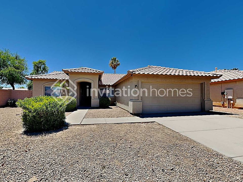 Home Features and Amenities: Air Conditioning, Fenced Yard, Garage, Granite Countertops, Long Lease Terms, Patio, Pet Friendly, Primary Bedroom on Main, Single Story House, Smart Home, Stainless Steel Appliances, Tile, W/D Hookups, and professionally managed by Invitation Homes.