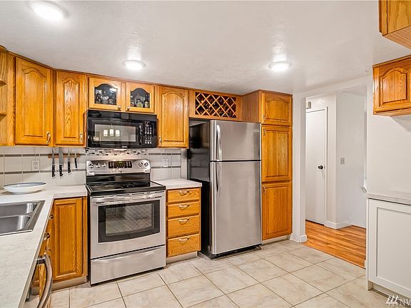 Perfect location! 1950 sq ft, 3bd/2.25ba home w/tranquil backyard oasis & just mins to I-405 & Northshore Schools. Tastefully updated kitchen w/ss appliances & brkfst bar opens to spacious dining rm & living rm w/classic brick surround fireplace. 2 sizable bdrms upstairs, full bath + large master bdrm w/updated 3/4 bath. Downstairs features bright family/rec rm w/built-ins, cozy fireplace & 1/2 bath. Private trex deck overlooks gorgeously landscaped backyard, fully fenced, 2-car garage & a/c.